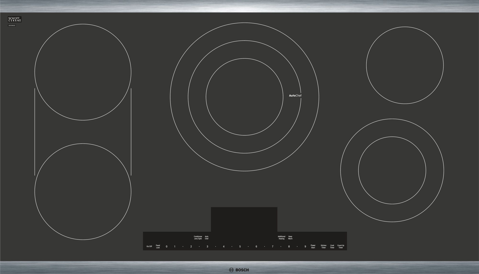 The Benchmark® series electric cooktop is sleek in design, and features AutoChef® technology which maintains precise cooking temperatures. Five element cooktop features a 3,080 Watt triple-zone center element. Each zone's timer automatically shuts off when cooking is done.Read More